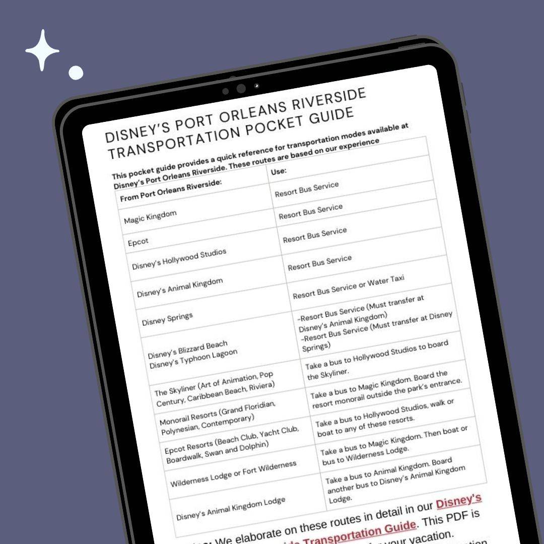 ✨ You'll receive a quick reference guide that shares how to get from your resort to popular destinations at Disney World. (You can use it on your vacation!)